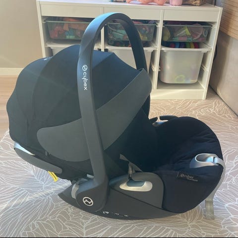 Pent brukt Cybex T+ (2023) bilsete til baby i svart farge. En liten bruksskade på ene siden.