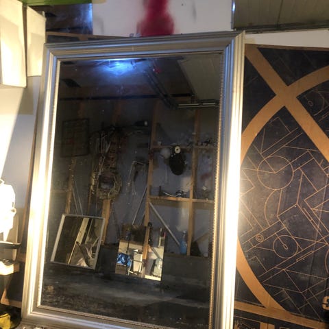 IKEA Songe speil med rektangulær form og dekorativ rillet ramme i metallfarget utførelse. Speilet har bred ramme med strukturert overflate rundt hele kanten. Kan brukes som veggspeil i for eksempel gang, soverom eller stue, og gir et stort speilfelt som gjør det egnet både til påkledning og som interiørelement.
