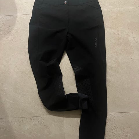 B Vertigo ridebukse for dame i blå farge, størrelse 38 (EU). Vil si den passer både small og medium. Buksen har hel lengde og er egnet til ridning og stallbruk. Materialet er elastisk for bevegelsesfrihet.