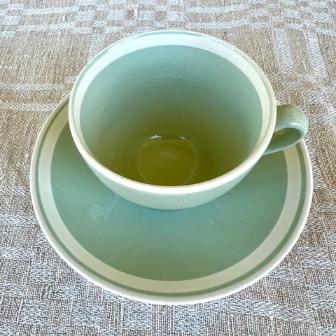 Søt liten kopp fra Figgjo flint fra ca. 50-60 tallet. I en koselig dus grønn farge.