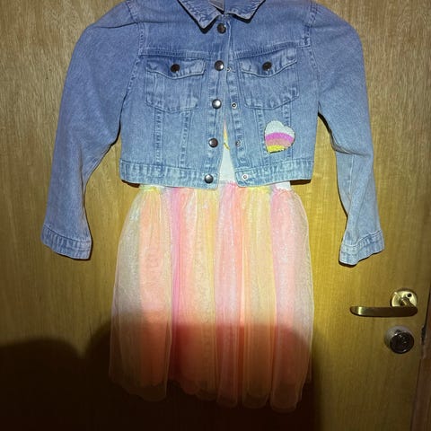 • Rosa denimjakke fra H&M (str. 140): En tøff, men søt jakke i en frisk rosafarge som passer perfekt over kjolen. Størrelsen tilsvarer ca. 9–10 år.