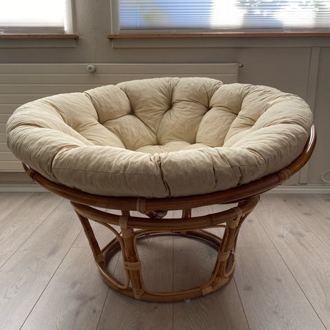 Selger pent brukt rund lenestol i rotting fra Granit. Deilig å ligge/sitte i. Selger for 900 kr. Førpris 2000 kr.