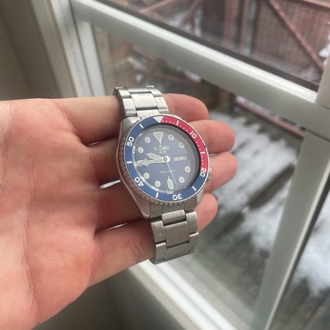 Selger en pen Seiko 5 Sports (SNZF-serien), populært kalt “Sea Urchin”.