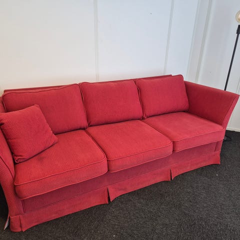 Gruppen selges samlet. Eldre sittegruppe i originalt stoff. Fremstår som pent brukt og i god stand.