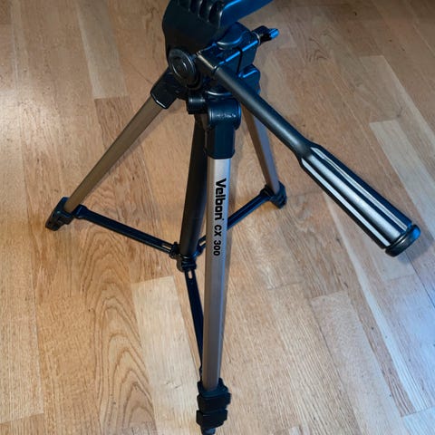 Justerbar høyde og håndtak for panorering. Transportveske følger med.