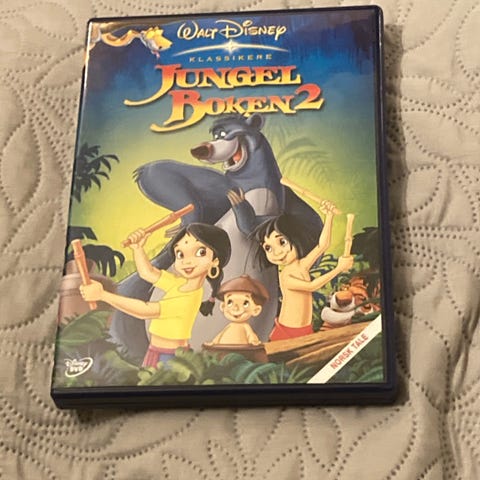 Disney Jungelboken DVD for barn. Animasjonsfilm basert på den klassiske historien om Mowgli og dyrene i jungelen. Egnet for barn og familievisning. Format: DVD.