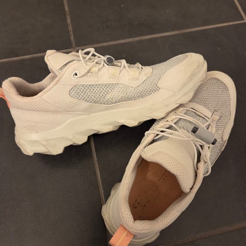 Pent brukt sneakers i sort med hvite lisser. Komfortable og i god stand, passer fint til hverdagsbruk.