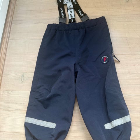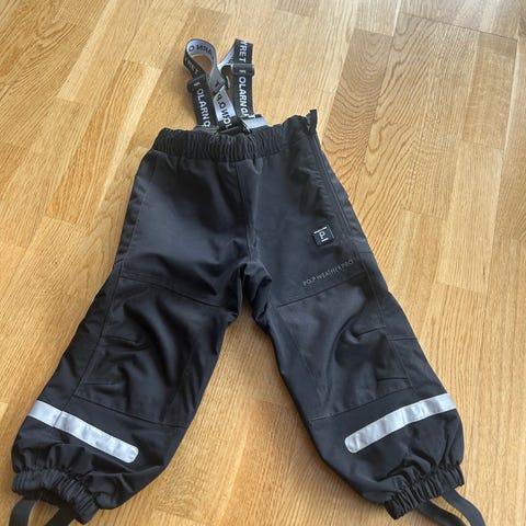 Polarn O. Pyret selebukse for barn i størrelse 92. Bukse i svart polyamid med justerbare seler og strikk nederst i bena. Refleksdetaljer på bena for bedre synlighet. Unisex-modell egnet til bruk i barnehage og utendørs lek.