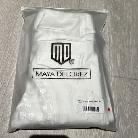 Selger to stk lite brukt Maya Delorez ride tights i str L. Den sorte er med sort logo, den burgunder er med gull logo. Begge har full grip, høyt liv og telefon lommer på begge sider. 1000kr for begge to.