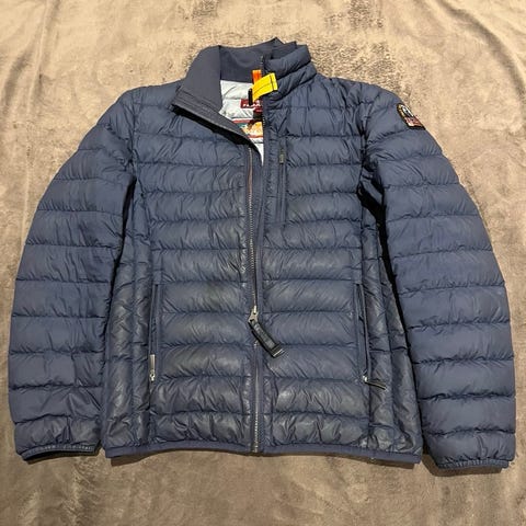 Jakken er fylt med dun og har et lett, vattert design. Farge grønn med karakteristiske Parajumpers-detaljer som logo på ermet og gul stropp ved kragen. Glidelås i front og lommer med glidelås. Ytterstoff i glatt materiale med horisontale quiltede sømmer.