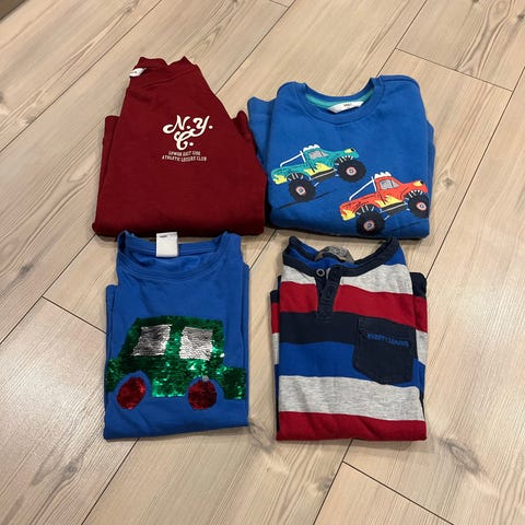 Klespakke med 4 genser til gutt. Pent brukt, uten anmerkninger.