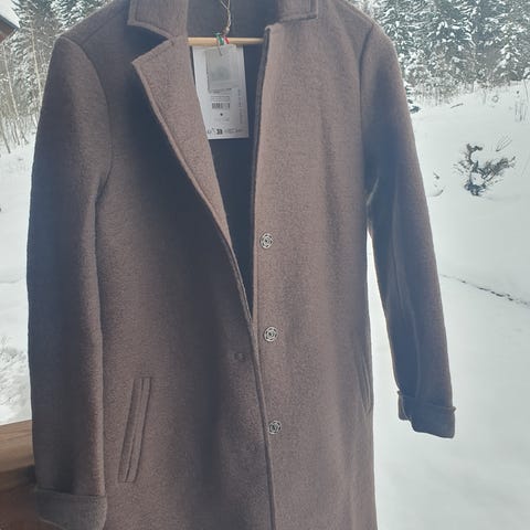 Culture Cubbia Jacket kåpe for dame i størrelse M. Kåpen har et flerfarget geometrisk mønster i blant annet brune, beige og rosa toner. Modellen har krage og slag, lukkes foran med knapper og har lommer i sidene. Produsert i Italia. Egner seg som ytterplagg i overgangssesonger og kan brukes både til hverdags og mer pyntede anledninger.