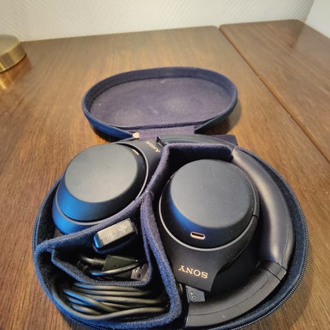 Sony WH-1000XM4 hodetelefoner er trådløse over-ear hodetelefoner, i fargen blå.