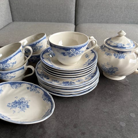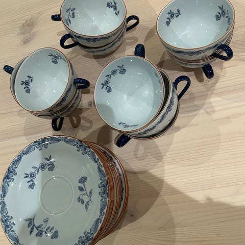 Rörstrand Ostindia kaffekopper med skåler i porselen blå og hvit