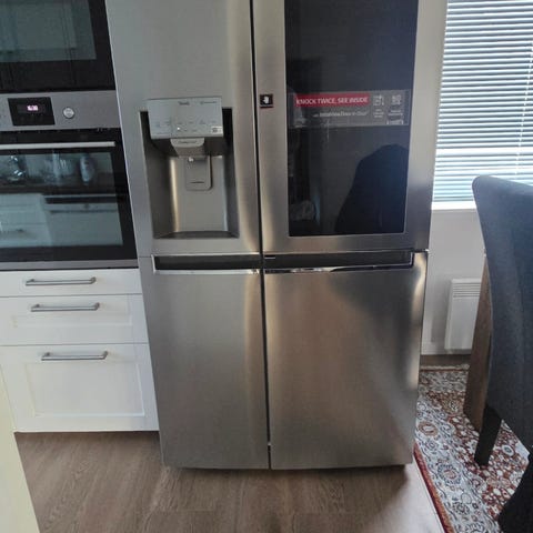 Flyttesalg, derfor selges billig! Kjøpt i 2023 og har 10 års garanti. LG Side-by-Side kjøleskap i rustfritt stål. Kjøleskapet har to dører for kjøledel og frysedel ved siden av hverandre. Fronten er i stålfinish med integrert is- og vanndispenser i døren. Modellen har et moderne design som passer inn på kjøkken med innebygde hvitevarer. Egnet for oppbevaring av matvarer i både kjøle- og frysesone i husholdning.