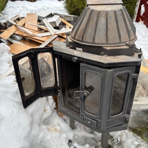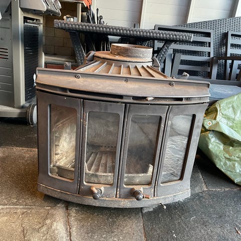 Vedovn sekskantet støpejern med glassdører