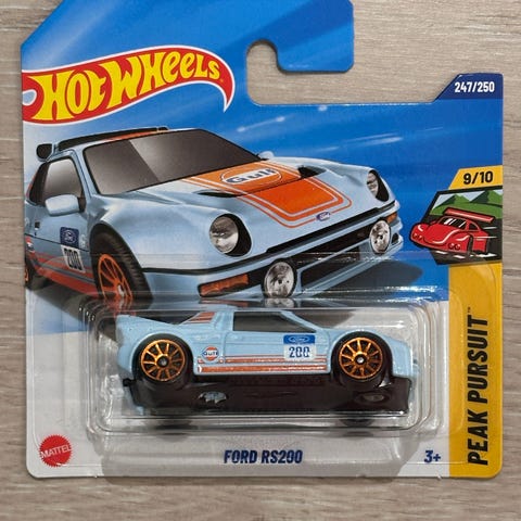 Hot Wheels Audi Sport Quattro lekebil i hvit og oransje farge. Modellen er en liten bil i støpt metall med plastdetaljer. Leveres i original blisterpakning med illustrasjon av bilen på pappkortet. Egnet som samlerobjekt eller lekebil for barn fra 3 år og oppover, i skala tilpasset vanlige Hot Wheels-baner og -tilbehør.