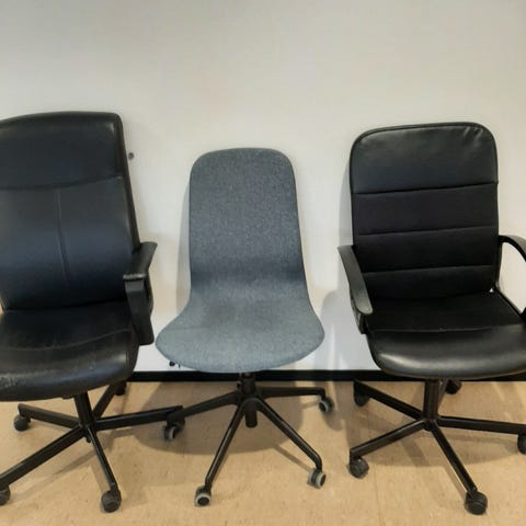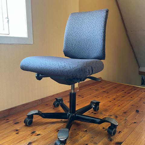Selger 10stk Håg kontorstol, har 8stk med blankt/grå hjulkryss og 2stk med sort hjulkryss. Det er mulighet for å vippe ryggen bakover, det er også korsryggstøtte.