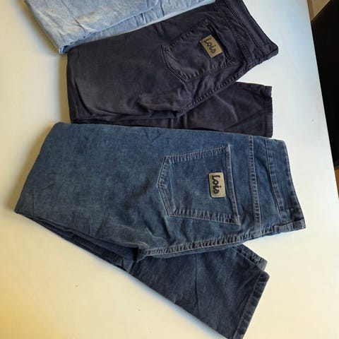 Hvit Lois Palazzo (ny), sort Lois Palazzo og jeans er modell Silvia. Den er ganske lik Palazzo, men uten lommer bak. kun brukt et par ganger. Str 29/34. Tilsvarer 38/40. Selges samlet 1500kr.