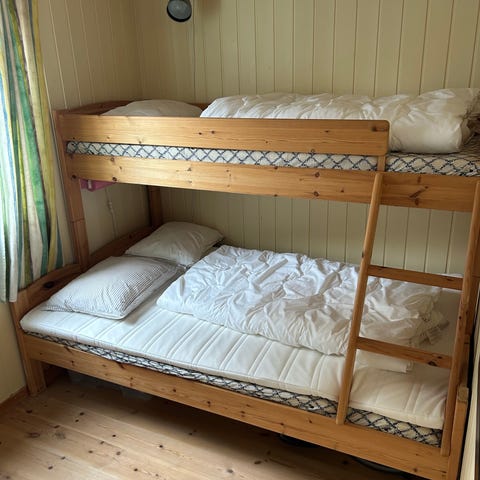 Tustna familiekøye fra Fagmøbler svært lite brukt selges grunnet endret behov. Køyesenga selges med Dreamzone Pluss F60 madrasser fra Jysk og Talgje overmadrasser fra Ikea. Køya er beiset i fargen skigardsgrå. Utvendige mål: B=120 cm L=209 cm H=138 cm. Liggemål: 75/120x200 cm. Kan hentes på Myking i Nesbyen.