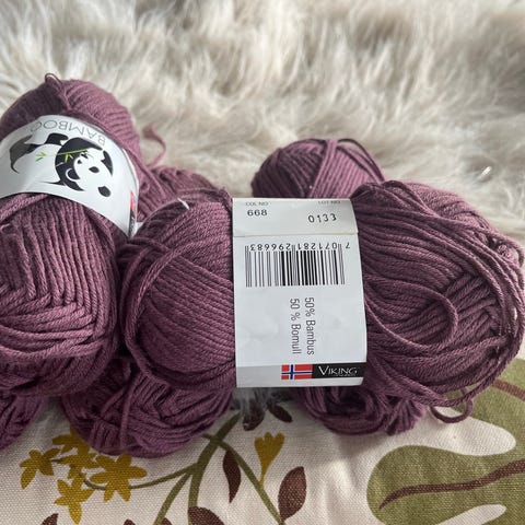 6 nøster Bambino fra Viking garn selges samlet.