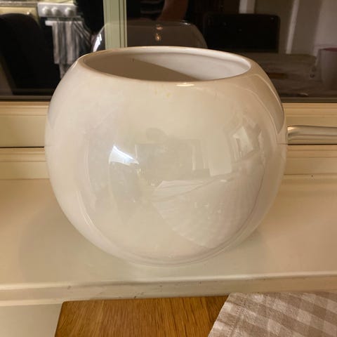 IKEA vegghengte oppbevaringskopper i hvit keramikk. Rund, skrå form med hull på baksiden for oppheng på vegg eller krok. Egnet til oppbevaring av småting som penner, sminke, nøkler eller annet tilbehør i gang, bad, kjøkken eller kontor. Leveres som sett med to like kopper. Selges samlet.