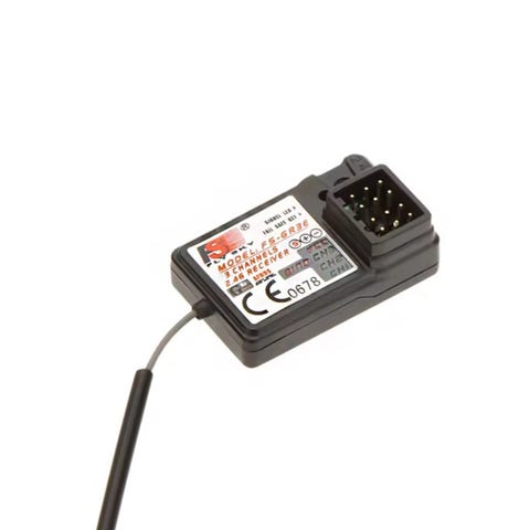 Mottakeren kobles til fartskontroller og servoer i modellen. Systemet drives av batterier i senderen (ikke vist nærmere på bildene). Dette settet består av én sender og én mottaker.