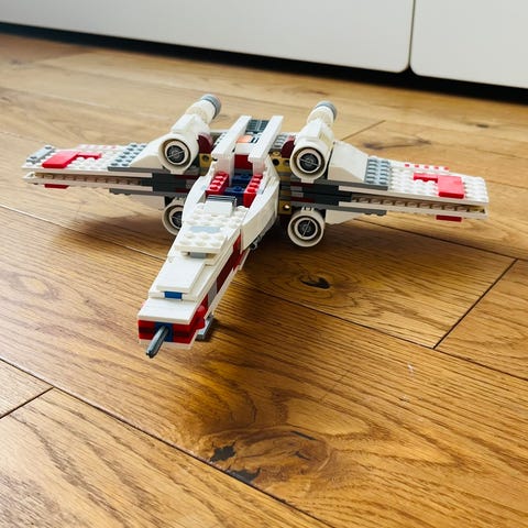 Lego settet har for det meste stått i skapet og samlet støv. det er derfor i ganske god stand. det mangler noen få biter her og der, men så å si alt er på plass. Kan sendes med fiks ferdig, men den blir mest sannsynlig ødelagt.