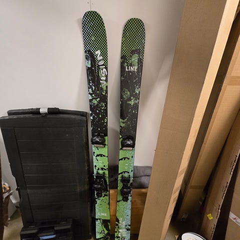 Line Vision 118 toppturski. 183 cm. Incredible powder ski built for touring. Floats like a dream. Doesn't do too bad on groomed pistes either. Small use marks and a couple of scratches that barely show up in the pictures. 152-118-138