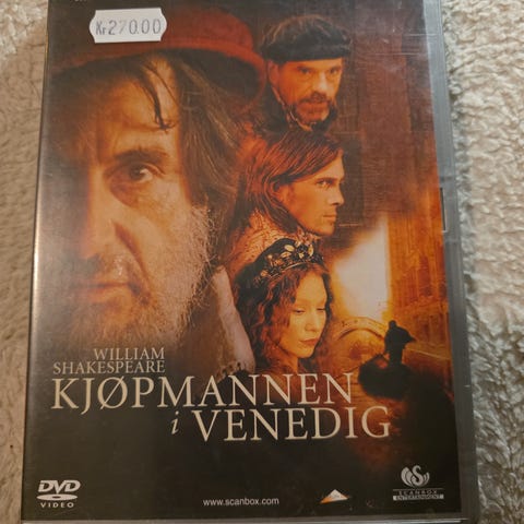 The Merchant of Venice DVD film. Filmutgave av skuespillet The Merchant of Venice basert på William Shakespeares verk. Format: DVD. Sjanger: drama. Språk og undertekster fremgår av omslaget.