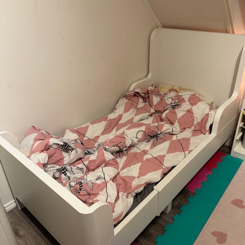Egnet for bruk med standard madrass til juniorseng. Passer på barnerom som overgangsseng mellom sprinkelseng og vanlig enkeltseng.