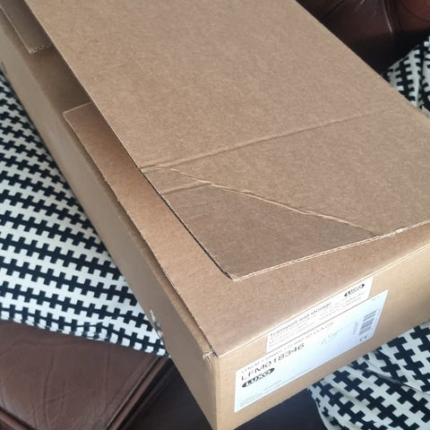 Fin metall boks med gullpapir glitter gis bort. Kan hentes