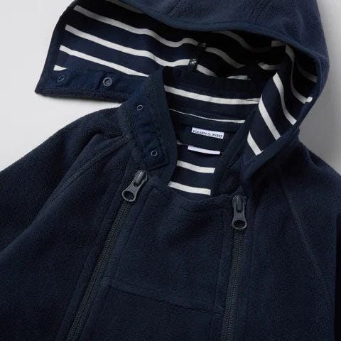 Vindtett og vannavvisende vindfleecedress fra Polarn O. Pyret til baby. Perfekt i vognen.