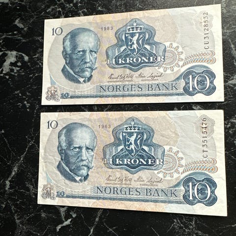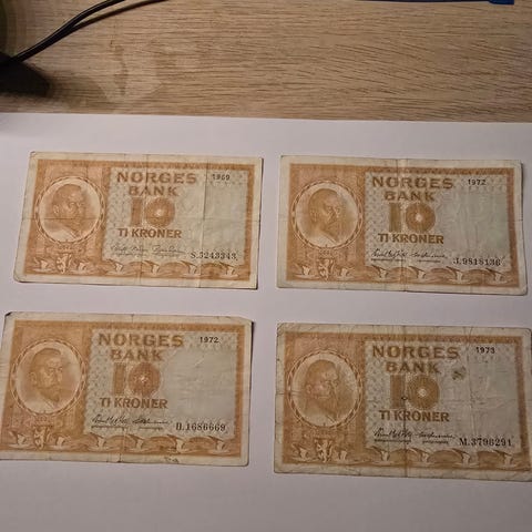 58 stk Norske blå 10 kr div. årstall