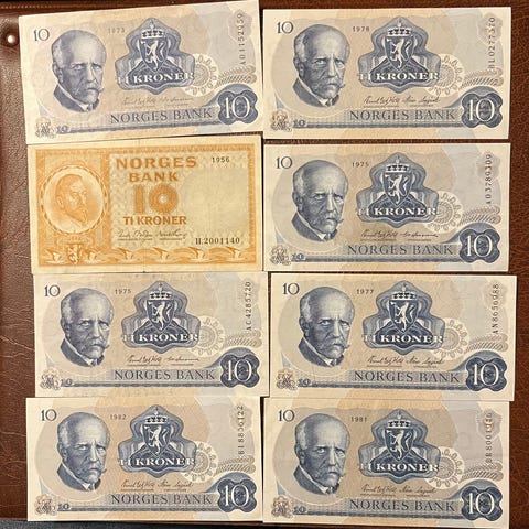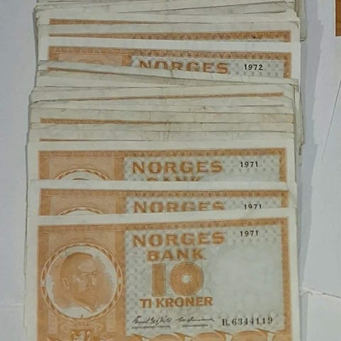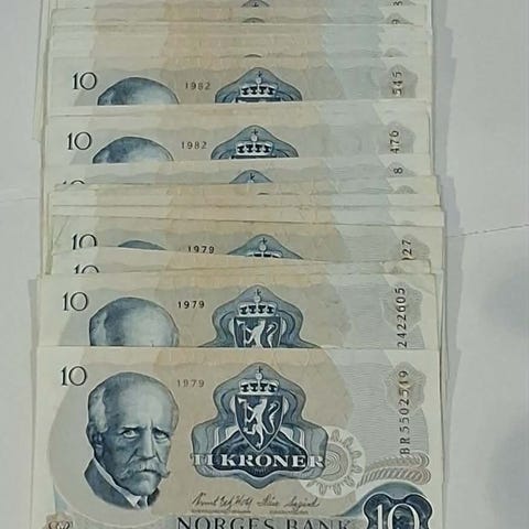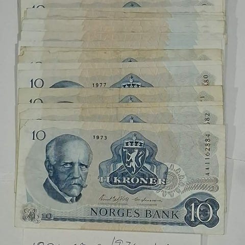 73 stk Norske Blå 10 kr i v.k.