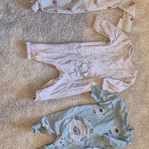 Tre pent brukte pysjer i str 50 selges. Den med elefant er i ull 😊