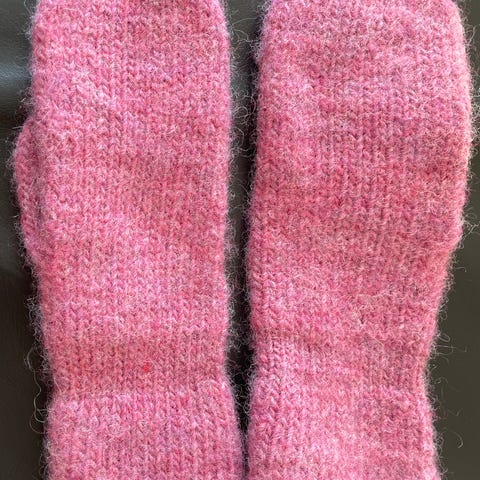 Vottene er strikket i Alafosslopi, lett tovet, i ubehandlet saueull fra Island. De er varme og jo mer de blir brukt jo varmere og mere vindtette blir de. Mansjettene er ekstra lange!