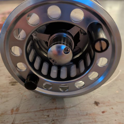 Fluesnellen er en Vangen Large Arbor-modell i metall, med perforert spole og bremsesystem tilpasset fluefiske. Utformingen med stor spolekjerne (large arbor) gir raskere inntrekk av snøre og jevnere brems.