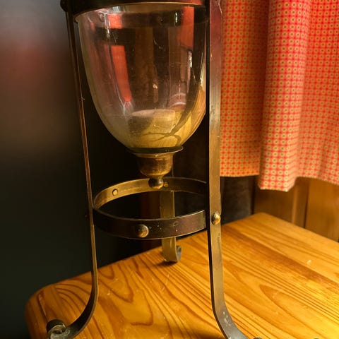 Stor dekorativ lykt i metall og glass – rustikk brun/sort finish