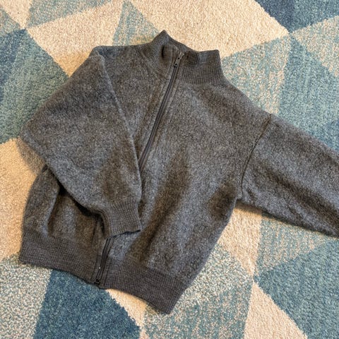 Janus ulljakke for barn i blå farge. Jakken er i størrelse 128 (merket 130 på lappen) og er laget i ull. Modellen er unisex og har glidelås foran. Passer som mellomlag eller ytterplagg avhengig av vær og temperatur.