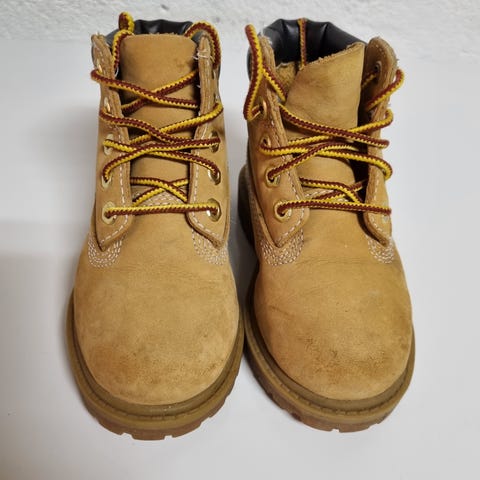 Timberland barnesko støvler i størrelse 22 for unisex. Modellen er en klassisk tursko-inspirert støvel med overdel i brunt semsket skinn kombinert med tekstilpartier og polstret sort krage rundt ankelen. Skoene har lisser foran med metallhemper og kraftig yttersåle i gummi for godt grep. Uttakbar innersåle følger med. Egnet som hverdagssko eller til lettere uteaktivitet for barn. ULLSÅLER følger med!