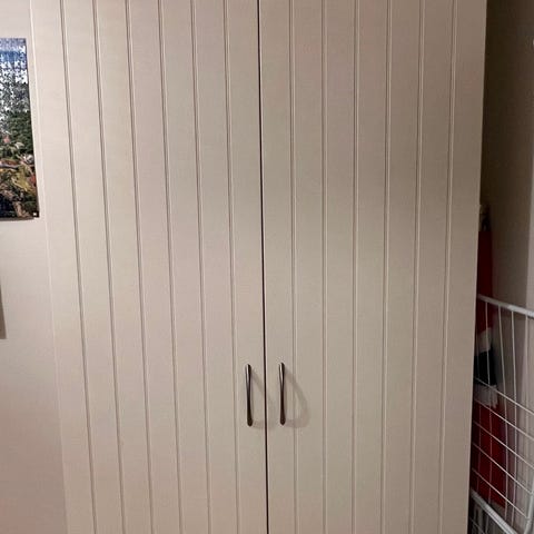 Pax garderobeskap som ble kjøpt for 10.360 kroner den 16.04.25 og som nesten ikke vært i bruk selges billig pga flytting. Kvittering medfølger.