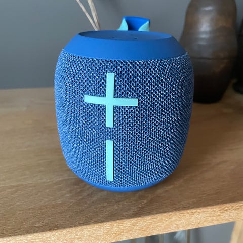Vanntett bærbar høyttaler med opptil 16 timers batterilevetid.