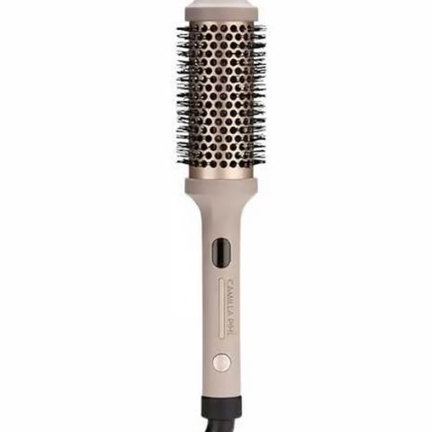 Camilla Pihl Cosmetics hårbørste med varme. Elektrisk rundbørste med integrert varmefunksjon og luftuttak gjennom børstehode. Passer til bruk på tørt eller håndkletørt hår for å gi form og volum. Kjøpt hos lyko i april 2024