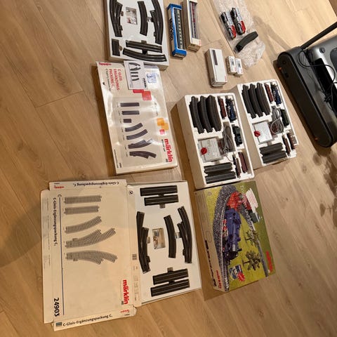Lokomotivet er automatisk Delta-digitalt. Går like bra analogt med nyere hvit trafo. Med alle papirer/manualer. Esken er slitt, men selve settet står nærmest som nytt uten brukerspor.