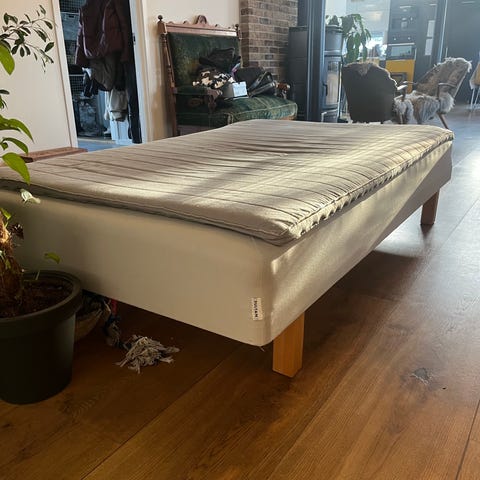 Sengen er noen år gammel men er fortsatt i god stand. Overmadrass kan medfølge . Må hentes