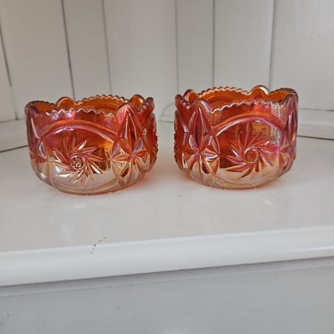 10 cm høye og diameter øverst er ca 9 cm. Selges samlet for 150kr