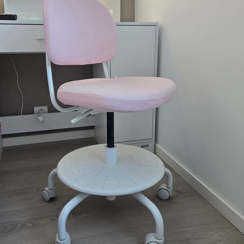 Rosa og fin kontorstol/ leksestol for barn/ stol