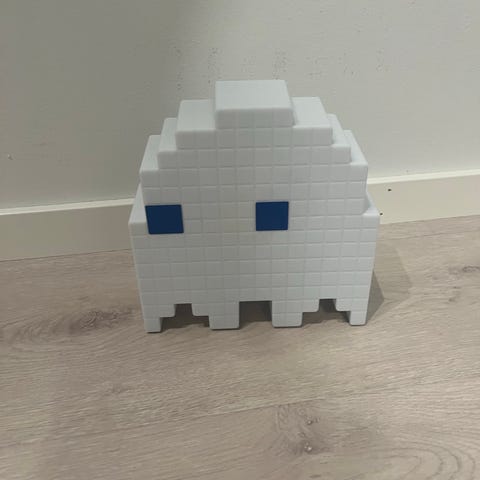 Pacman lampe, husker ikke hvor den er kjøpt. Aldri brukt, bruker 3xAAA batterier eller micro USB ledning (følger ikke med) :)