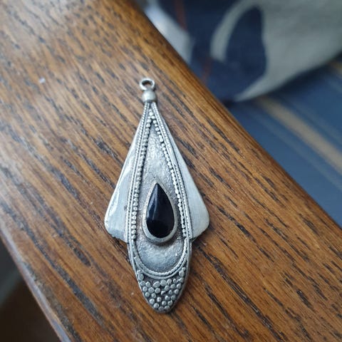 Selger pent anheng I sølv med sten stemplet med engelsk sølvstempel.